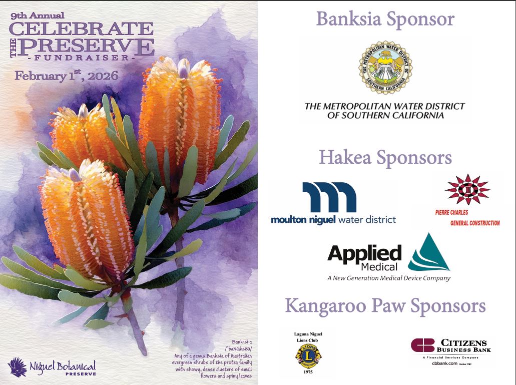 The Niguel Botanical Preserve is a 501(c)(3) non-profit organization, tax ID #33-0045387. Donations are tax deductible to the full extent allowed under the law. For more information, please consult your tax advisor.